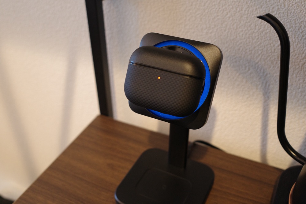 ちなみに AirPods Pro は Apple Watchの充電器にも対応していますが、このPITAKAのケースを装着すると充電できなくなります。この点はちょっぴり残念。